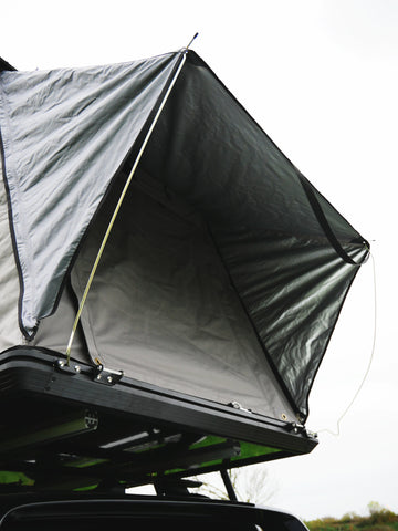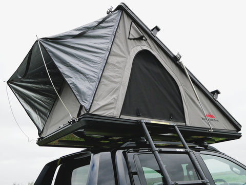 The Ventura XL Clamshell Roof Top Tent features an assisted gas strut opening mechanism, making set up incredibly fast and easy. One man operation allows it to pop up in seconds to full height.