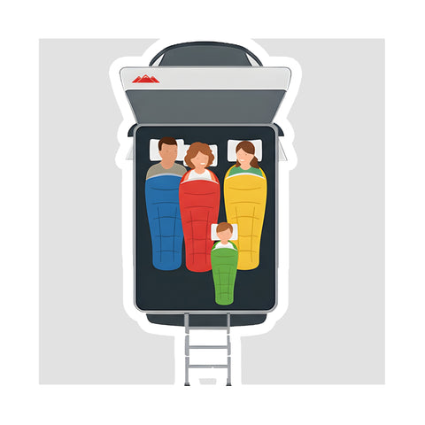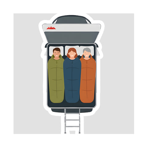 Stay protected with the Ventura XL Clamshell Roof Tent's Flysheet Extension! This innovative feature creates a sheltered, enclosed space, allowing you to climb up and down the ladder comfortably, no matter the weather. Perfect for added privacy and protection on every adventure!