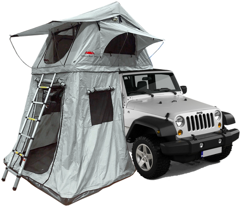 Our tents feature an assisted opening mechanism, making set up incredibly fast and easy. One man operation allows it to fold out in seconds to full height The tent attaches to most vehicles with roof rails, roof bars or roof racks. it is very versatile. When you have it packed up, it is covered by a UPVC, heavy duty waterproof cover which is sealed/zipped all around.